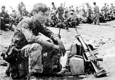 Cầu Ba Cẳng nhìn từ đường Trịnh Hoài Đức (là con đường chạy thẳng ở cuối rạch Bãi Sậy). Đi về phía phải của Cầu Ba Cẳng trong hình này vài chục mét là tới chợ Kim Biên ngày nay, còn về phía trái khoảng 200m là tới Đại lộ Đông Tây và kênh Tàu Hủ. Hình này chụp khoảng đầu thập niên 1950, ngày nay cầu này không còn nữa. Cái cẳng trong hình này là cẳng đi xuống đường Yunnan, tức Vân Nam (sau 1955 là đường Vạn Tượng), còn hai cẳng kia thì bắc qua hai con đường hai bên rạch Bãi Sậy: bên trái xuống bến Bãi Sậy, bên phải xuống bến Nguyễn Văn Thành nơi đầu đường Cambodge (sau 1955 là đường Kim Biên).
