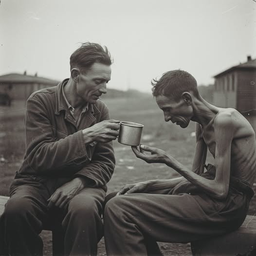 Parmi ces hommes devenus de simples ombres, il en était un dont le geste est resté gravé dans la mémoire collective. Émacié, les yeux cernés et les côtes saillantes sous sa peau tendue, il possédait pourtant une richesse insoupçonnée : la générosité. Chaque jour, il recevait un demi-verre d’eau, ce filet glacé qui lui permettait à peine de survivre. Et chaque jour, au lieu d’engloutir ce précieux liquide, il en gardait la moitié. Inlassablement, il la conservait pour l’homme à ses côtés.
