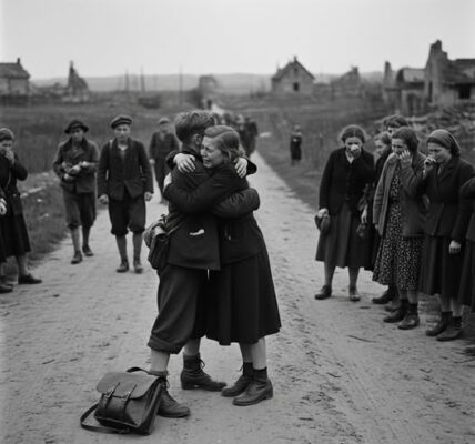 The maternal bond in this desolate setting is one of the most powerful symbols of this era. A mother’s hand on her child’s shoulder is not just a gesture of tenderness; it is an act of survival. In times of drought, diseases related to malnutrition, pervasive dust, and precarious hygiene were common. Mothers then shouldered a tremendous responsibility: to protect, nourish, and encourage, even when the land seemed to yield no harvest. This simple yet universal gesture embodies the silent struggle of millions of women who, far from the battlefields of Europe or the Pacific, defended life daily.