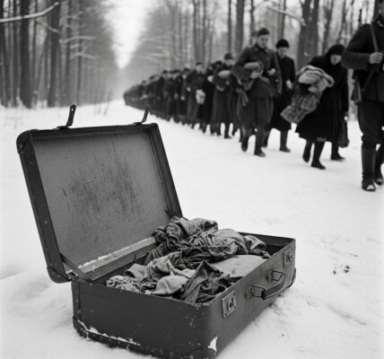 Among them was a mother and her small son. Kneeling in the snow, her hands trembling, she untied his little boots. She whispered urgently, “Run when they tell me to stand. Don’t look back.” The boy, too young to fully understand, clutched her hand tightly, his breath visible in the frozen air.