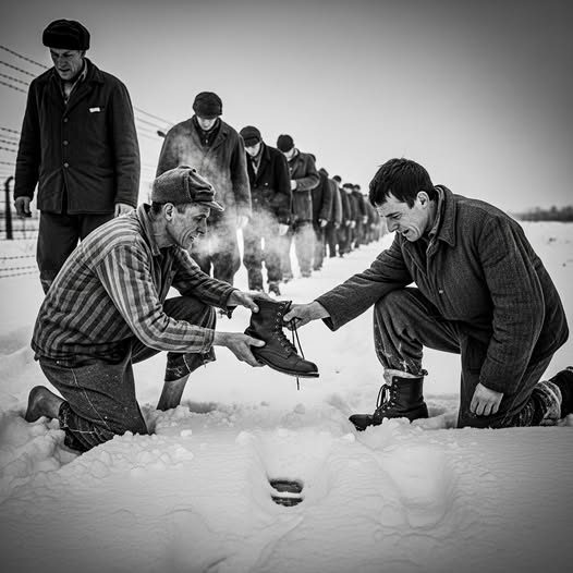 Without hesitation, this fellow prisoner bent down in the snow. His breath formed clouds in the freezing air as he tugged at the laces of his own boots. With trembling hands, he pulled them free and pressed them into the other man’s hands.