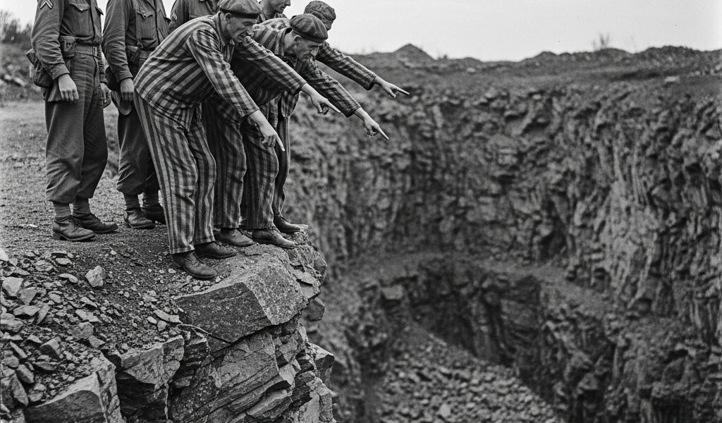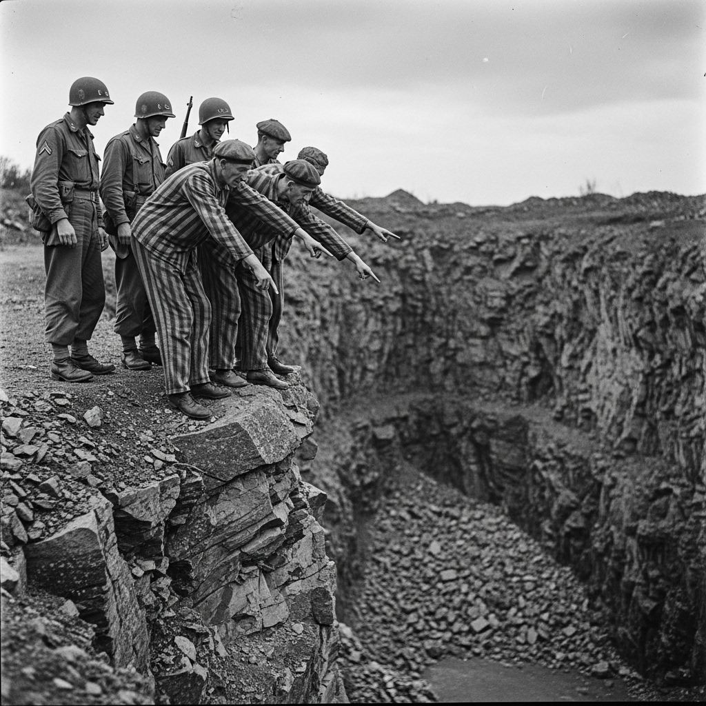The survivors who had endured the hell of the Mauthausen concentration camp were speechless. When the American soldiers entered the camp, prisoners in striped uniforms led them to the edge of the quarry, a place of suffering and a symbol of exploitation. There, on the edge of the cliff, they stood together, liberated and liberators, gazing at the stone quarry where thousands of lives had perished.
