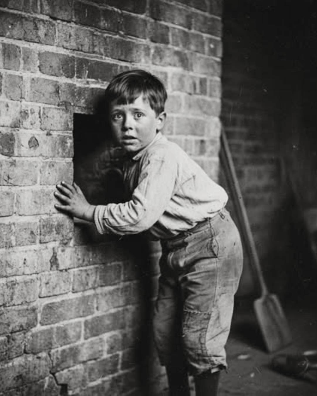 Thomas remembered the moment when, trembling and hesitant, he had placed his small hands on the rough bricks. The morning cold mingled with the still-warm heat of the unlit fireplaces. The acrid smell of soot invaded his lungs, triggering a cough that echoed through the chimney like a deadly echo. Behind him, the teacher’s voice cracked like a whip: “Faster, kid, or I’ll light the fire underneath!” It was not an empty threat. Many children had felt the suffocating heat of flames deliberately lit to keep them moving. With reddened eyes and burning throats, they climbed in panic, praying to finally see the light from a basement window.