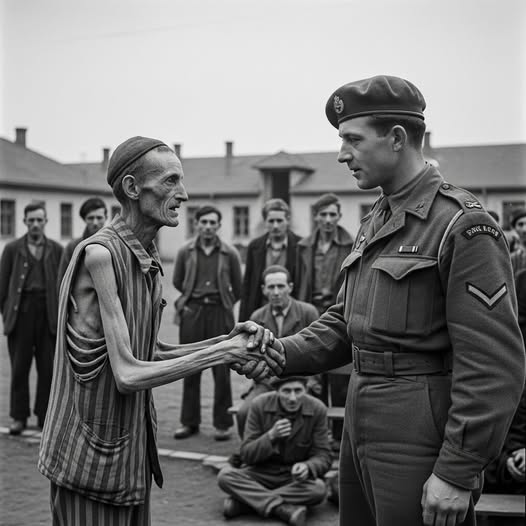 In May 1945, Europe was barely emerging from the abyss. The Second World War, the largest and most devastating war humanity had ever known, was drawing to a close. In the ruins of a torn continent, the survivors of the concentration camps, silhouettes shattered by hunger, fear, and daily humiliations, discovered for the first time the possibility of breathing without fear of immediate brutality. The liberation of the Nazi camps by Allied troops was a historic moment, but beyond the military event, it was embodied in tiny, intimate gestures that reflected the gradual return to humanity. Among them, a simple act, almost banal in other times: a handshake.