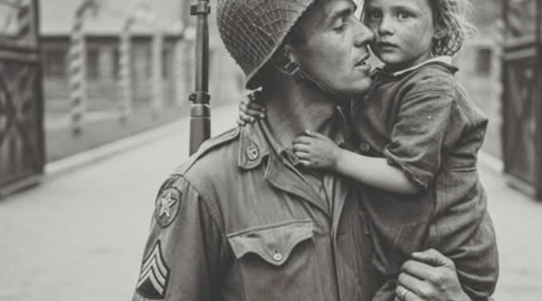 On April 29, 1945, the moment American troops entered the gates of Dachau concentration camp , war revealed its most inhuman face. This camp, the first of the Nazi concentration camp system, had seen tens of thousands of prisoners pass through it since 1933: political opponents, priests, Jews, resistance fighters, Soviet prisoners of war. It was a place designed to break bodies and souls, where every breath seemed borrowed from death. And yet, that day, a breath of life was reborn in the form of an improbable encounter: that of an American soldier and a rescued girl, too weak to walk.
