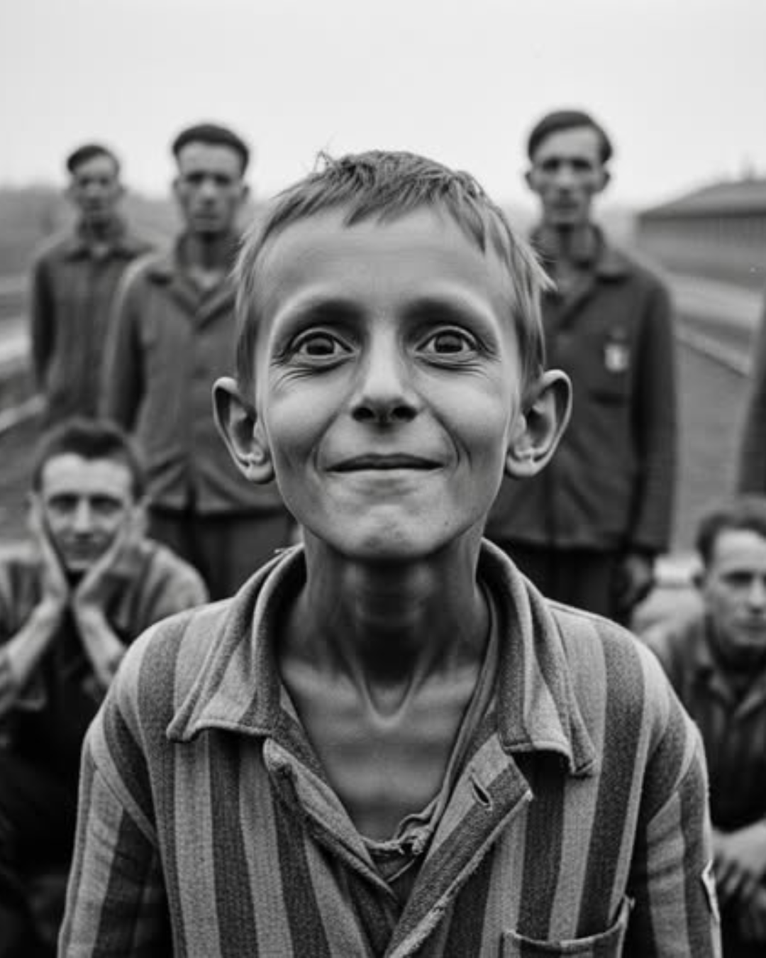 Survivors’ testimonies describe a daily life where every minute was a struggle to stay alive. Food consisted of watery soup, a crust of hardened bread, sometimes nothing at all. Bodies were falling apart, skin clung to bones, and human dignity was systematically trampled. In this icy world, smiling was impossible. And yet, the boy in the photo, with his sunken cheeks and huge eyes, smiled.