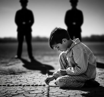 Tra i prigionieri esausti, barcollanti, spiccava un ragazzo. Non aveva più di dodici anni e il suo corpo era l’ombra di se stesso. Tra le mani stringeva qualcosa che a prima vista sembrava niente: un pezzo di pane raffermo, così piccolo e secco che nemmeno i cani affamati lo toccavano. Eppure, i suoi occhi mostravano che quel pane era più di un semplice cibo.